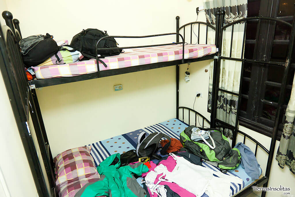 En Vietnam podemos encontrar alojamientos de todo tipo. Desde bonitos hoteles a simples habitaciones con o sin baño privado. Si buscamos alojamientos en Vietnam muy baratos, éstos pueden ir de los 4€ a los 8€. Lo más común son las habitaciones privadas pero en Hanoi también dormimos en habitaciones compartidas de literas.