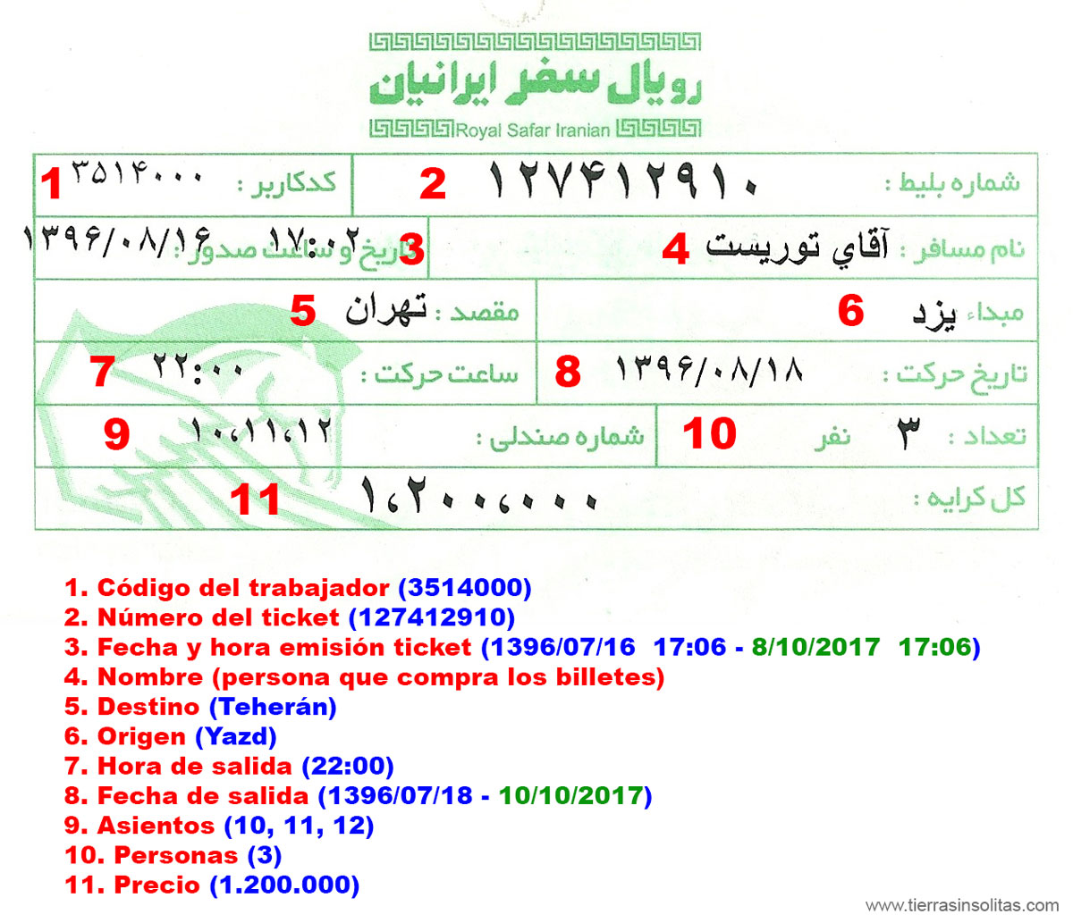 Es importante aprenderse los números en Farsi, así podemos entender en nuestro billete el horario de salida, anden, asientos asignados, fecha, etc…