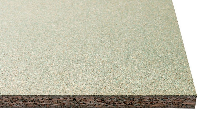 Es de color verde y su fabricación es igual que el aglomerado común. Tiene alta resistencia al agua (no aguanta sumergido) pero su peso sigue siendo un punto negativo en nuestra fabricación de muebles.