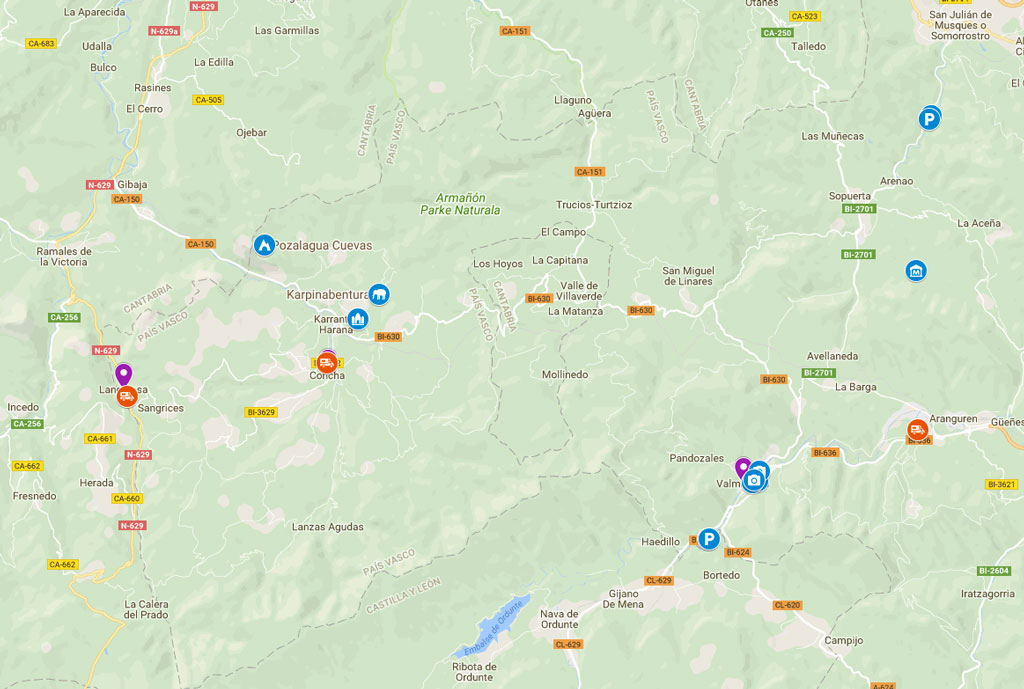 También tenemos varios parking donde poder pasar la noche como el del barrio de Concha o el parking de las propias cuevas de Pozalagua.