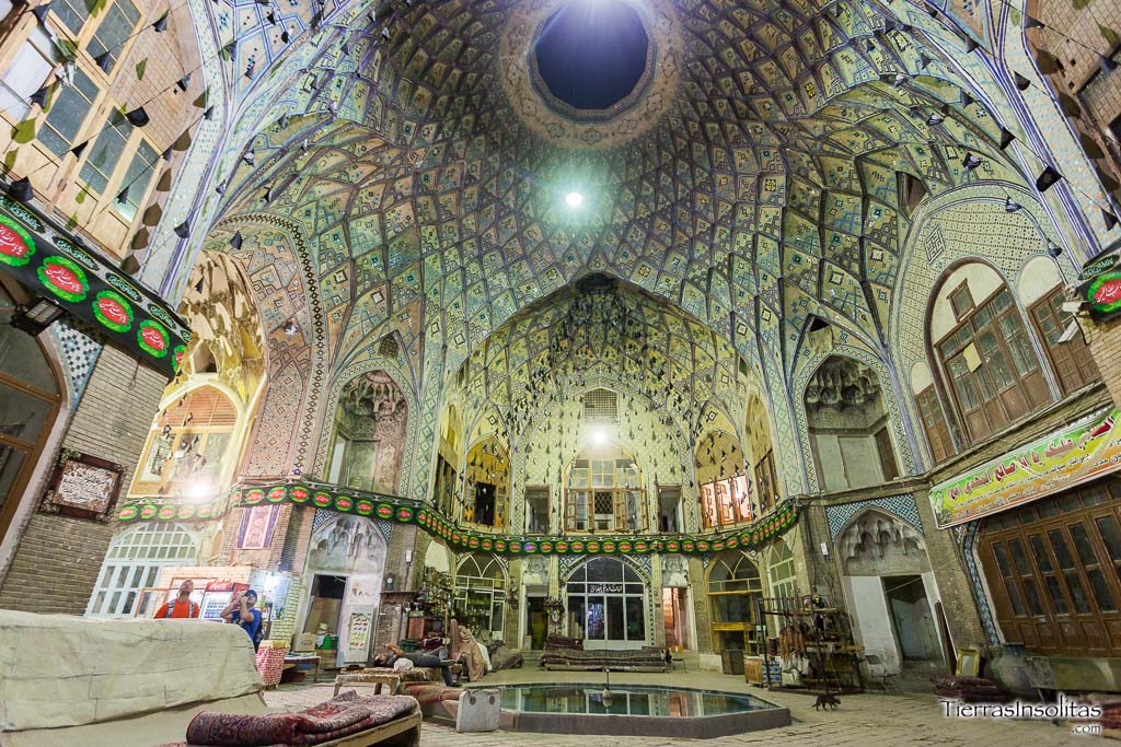 El bazar de Kashan es extiende a lo largo de una calle. Durante todo el recorrido estaremos arropados por sus cúpulas, las cuales están decoradas con banderas rojas y negras.