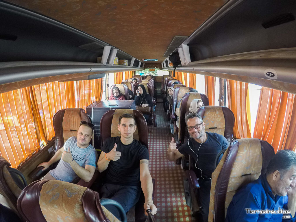 Desde Teherán tomamos un autobús en la Terminal-e Jonub. Podemos llegar hasta aquí en metro (línea roja nº1). Hay que entrar en el edificio y acercarnos a las ventanillas de ticket. Si alguien os quiere acompañar para ayudaros, negaros, él se llevará una comisión y los billetes os saldrán más caros. A nosotros nos acompaño un señor y nos pedían 120.000 IRR por el trayecto en autobús VIP. Nos parecía caro y al irnos, nos vino el chico de la ventanilla y ahora el billete costaba 80.000 IRR (1,70€).