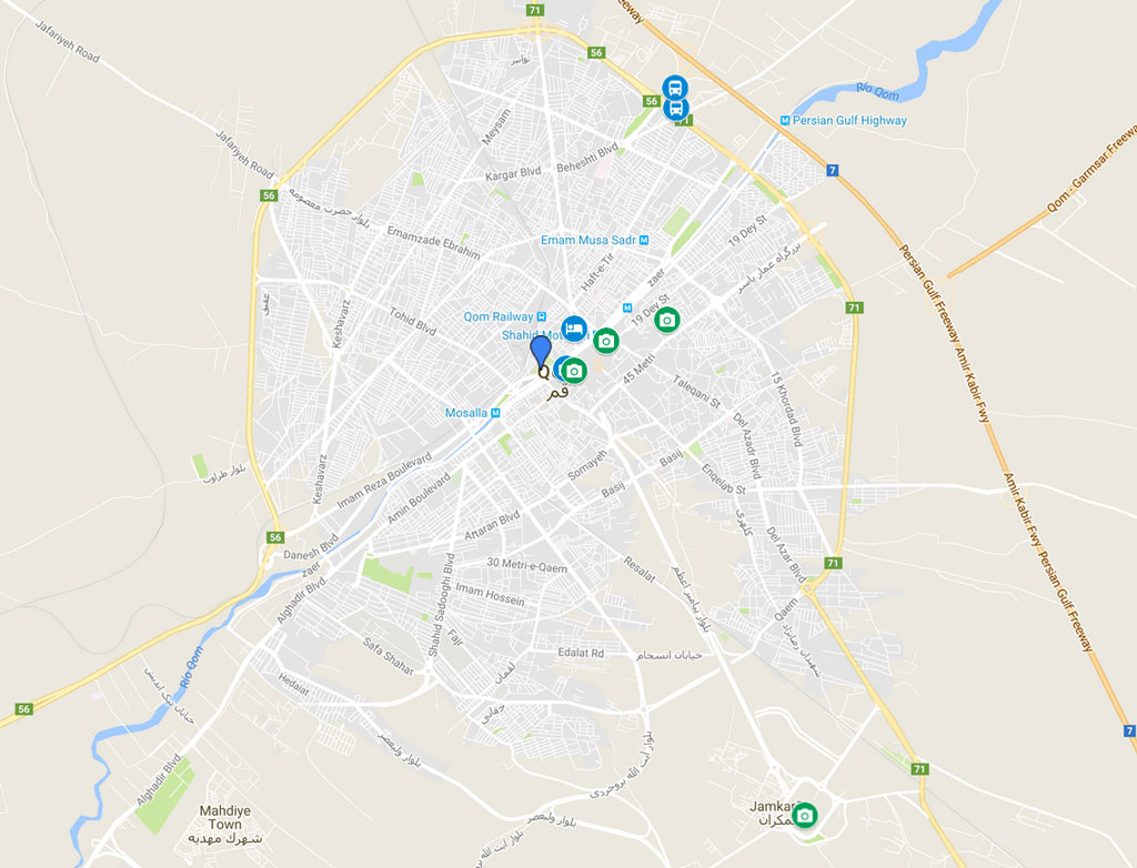 El trayecto dura 1h30′ y el bus nos deja en la estación que está al noreste del centro de Qom (a las afueras). Solo nos queda tomar un taxi (100.000 IRR) para que nos lleve hasta el centro.