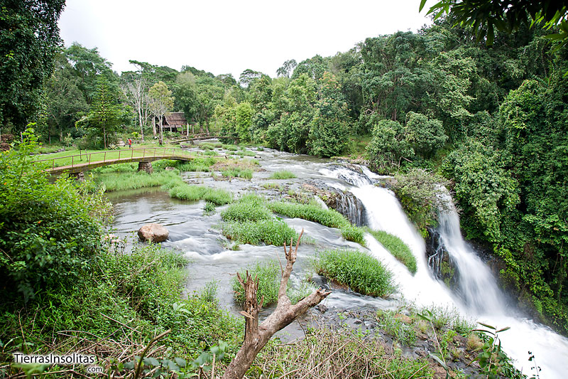 Esta es una de las cascadas más espectaculares del sur de Laos dentro de la Meseta de Bolaven. Las dos ramificaciones del río Huay Bang Lien salen de la jungla para saltar juntas más de 120 m de altura. El Tat Fane Resort ofrece las mejores vistas de las cascadas. La entrada son 10000 LAK.