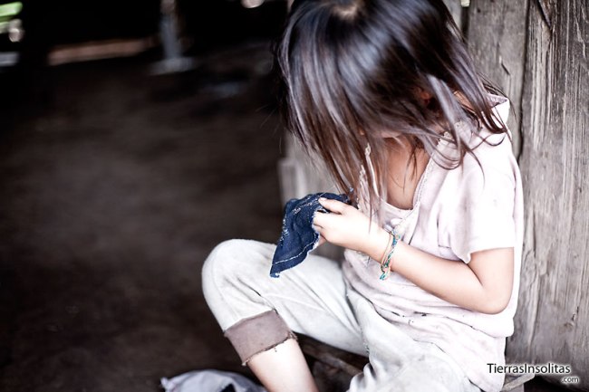 Algunos de los niños y las mujeres se dedican a coser. Hacen con sus propias manos los bolsos y pulseras que venden a la entrada del pueblo.