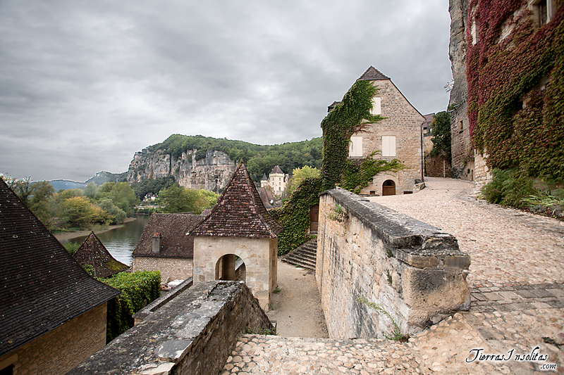 Vigilando el río Dordoña, La Roque-Gagec se aferra a las paredes rocosas de un acantilado. Con fachadas de color ocre, tejados de pizarra, ventanas rojizas y verdes enredaderas, crea una simbiosis con el bonito paisaje que le rodea. Si caminamos por sus estrechas callejuelas nos llevara hasta su fuerte troglodita. Perteneciente a la categoría de ‘Les plus beaux villages de France’.