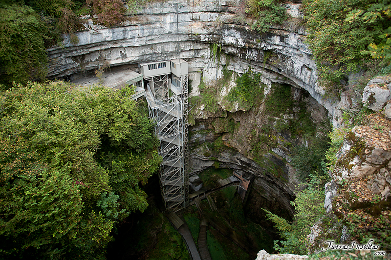 Impresionante sima con una boca de entrada de 35m de diámetro. Se baja hasta la base en ascensor para después realizar una visita guiada por su interior. Uno de los primeros contactos con la sima será en barca surcando el río subterráneo de Padirac. Una pena que dentro no dejen hacer fotos…